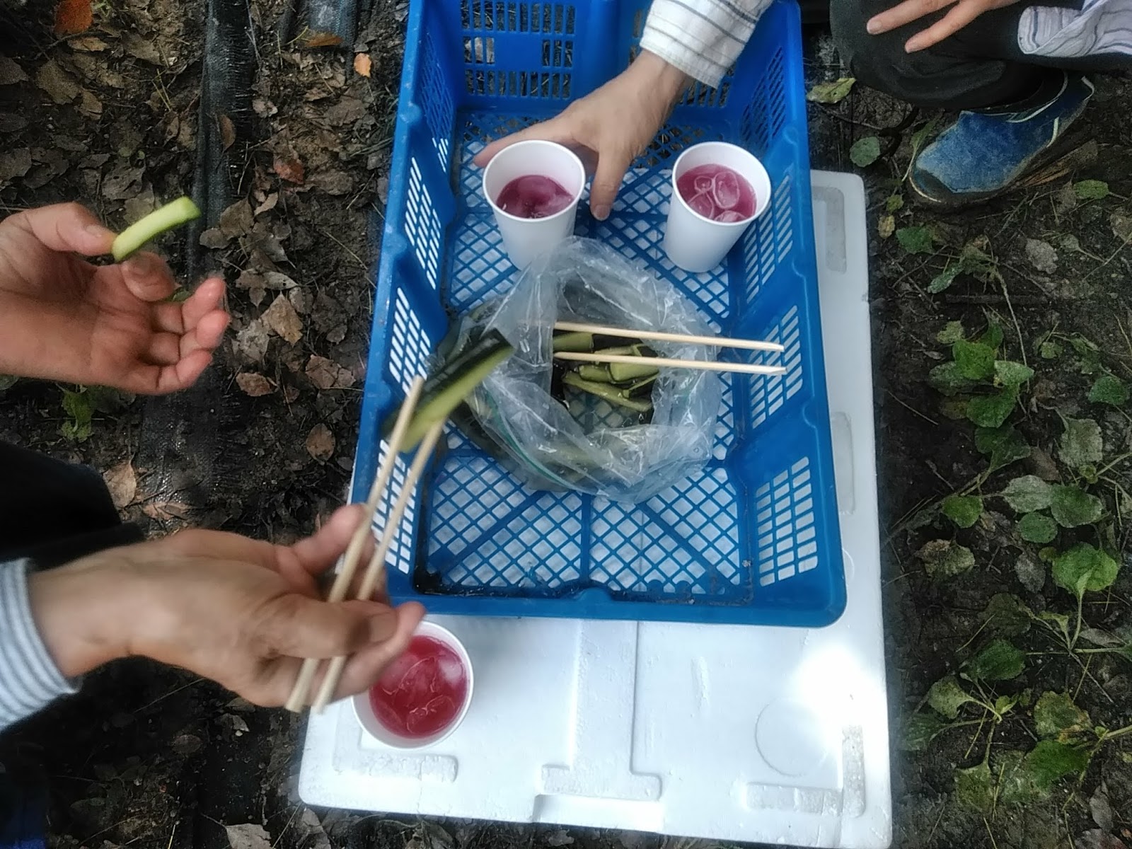 小休止、山内総料理長がシソジュースを作って皆さんに振舞っていただきました。佳子様からはキュウリの一夜漬けを提供していただき美味しくいただきました。